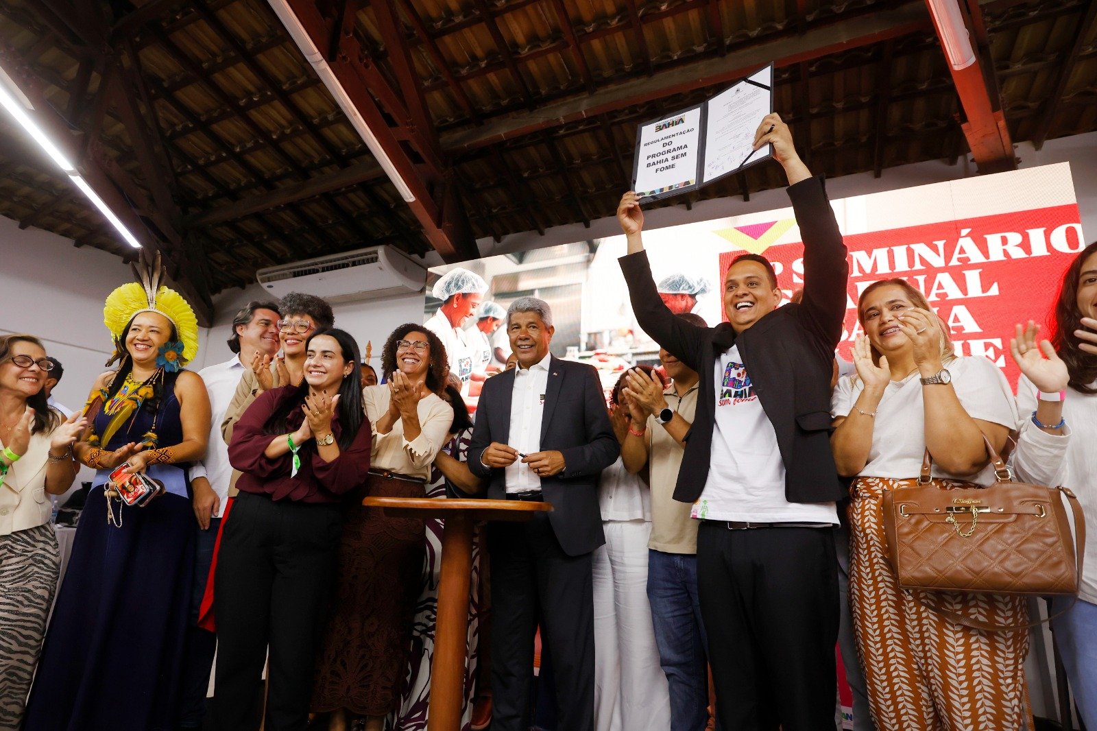 O governador Jerônimo Rodrigues assinou o decreto que regulamenta o Programa Bahia Sem Fome e busca organizar e fortalecer sua integração com outros órgãos estaduais. A medida será publicada no Diário Oficial do Estado (DOE) desta quinta-feira (27). Na ocasião, também foi lançada a revista VIGISAN – Inquérito Estadual sobre Segurança e Insegurança Alimentar na Bahia no contexto da COVID-19, um relatório de diagnóstico destinado a subsidiar a formulação de políticas públicas de combate ao cenário da fome. O ato ocorreu durante o 4º Seminário Estadual do Bahia Sem Fome, nesta quarta-feira (26), em Salvador.