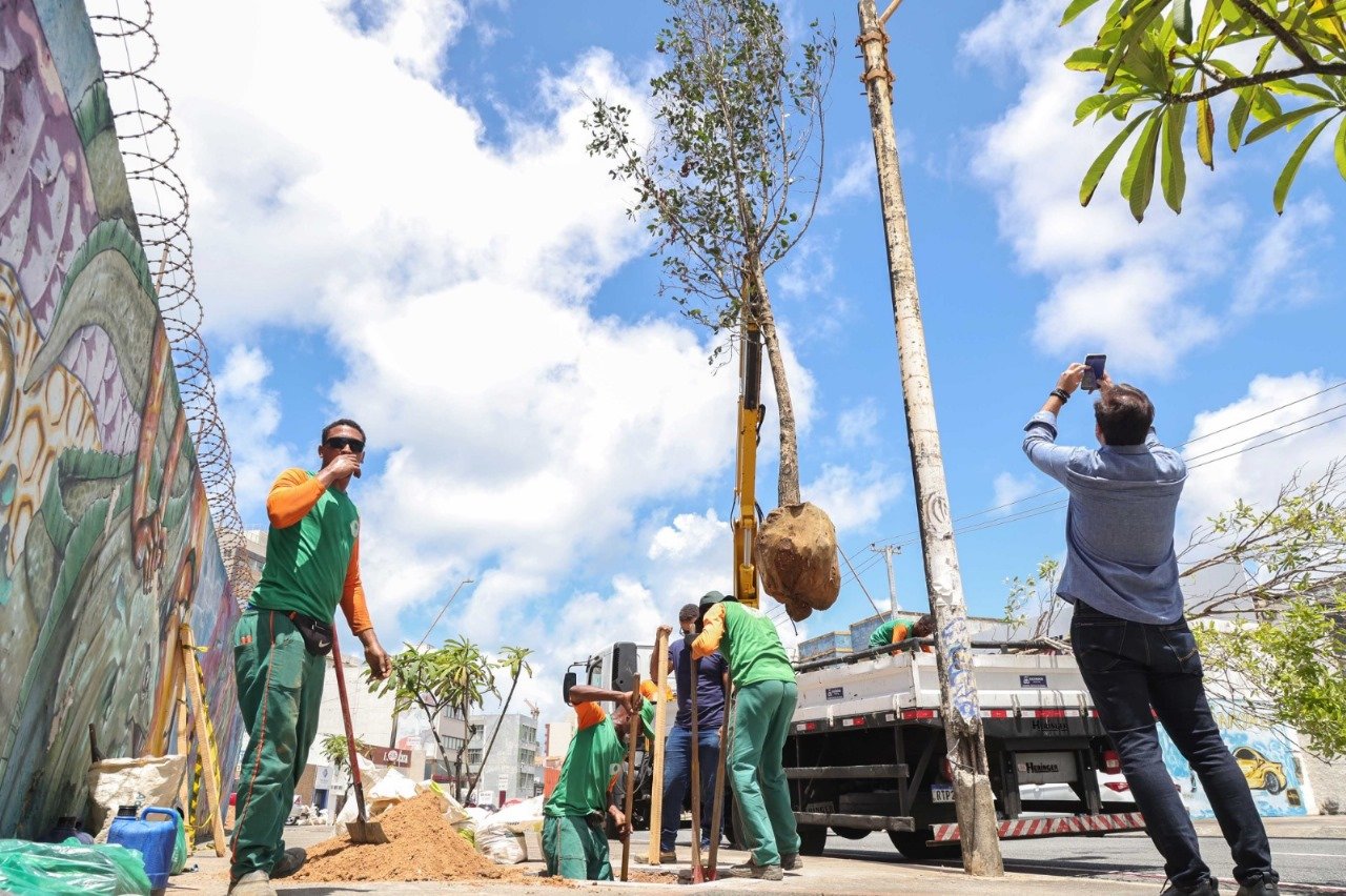 Nesta quinta-feira (9), foram plantadas seis mudas no trecho. O trabalho é realizado em etapas, com ajustes técnicos em alguns pontos devido à presença de tubulações subterrâneas. A iniciativa tem como objetivo ampliar a arborização e promover a transformação do espaço urbano em Salvador.