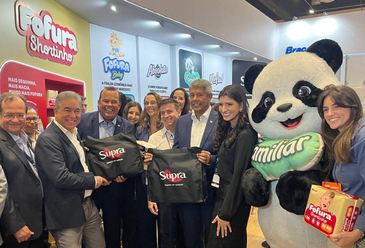 O governador da Bahia, Jerônimo Rodrigues, visitou o estande da Bracell Papéis, noite desta quarta-feira, 6, durante o primeiro dia da 14ª edição da Superbahia – Feira e Convenção Baiana de Supermercados, Atacados e Distribuidores, que ocorre no Centro de Convenções de Salvador até sexta-feira, 8. Ele estava acompanhado do vice-governador Geraldo Júnior, da presidente da Associação Baiana de Supermercados (Abrase), a empresária Amanda Vasconcelos, e de outras autoridades. Durante a visita, o governador conheceu os dois principais lançamentos da Bracell Papéis para o varejo do Nordeste: o papel higiênico Supra, que é a aposta da empresa no segmento premium, e a fralda Fofura Shortinho, que marca a entrada da companhia na categoria de fraldas pants.