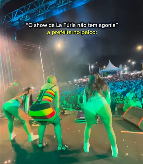 A noite era de pura animação, com o público embalado ao som contagiante da banda La Fúria, quando um momento inesperado mudou o clima do show. A prefeita Monalisa Tavares (União Brasil), de Ibicaraí, cidade do interior da Bahia, subiu ao palco e mostrou que também sabe “quebrar tudo”.