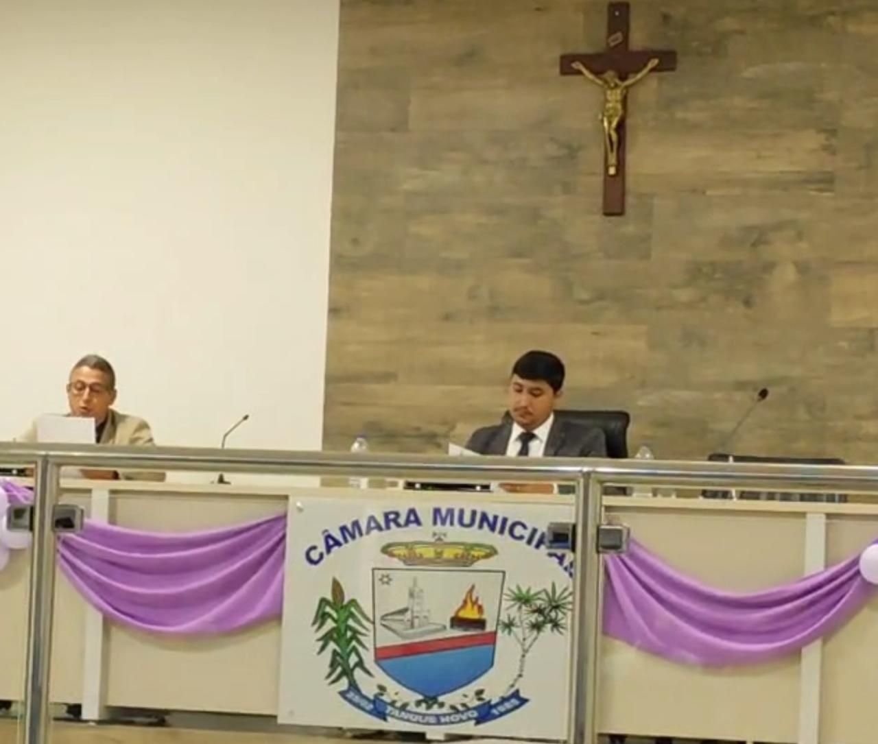 Cassado pela Justiça Eleitoral em primeira instância, o vereador Cleiton Vieira Batista (PP), o mais votado na história do município, realizou uma “sessão” ilegal na Câmara Municipal de Tanque Novo, no último dia 4, de acordo com a Presidência da Casa. Os vereadores Ana Bela (PP), Tião de Pompílio (PP), Ademir (PP), Nondas (PP) e Roberval (PSD) comparecem à “sessão”.